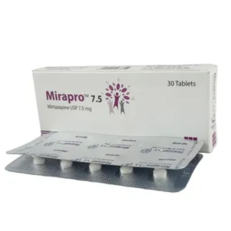 Introduction: Mirapro 7.5 is a prescription medicine used in the treatment of depression. This medicine helps by increasing the level of chemical messengers (serotonin and noradrenaline) in the brain that have a calming effect on the brain and relax the nerves, thus treating your depression. Mirapro 7.5 may be taken with or without food. It is advised to take this medicine at a fixed time each day to maintain a consistent level in the blood. If you miss any doses, take it as soon as you remember. Do not skip any doses and finish the full course of treatment even if...