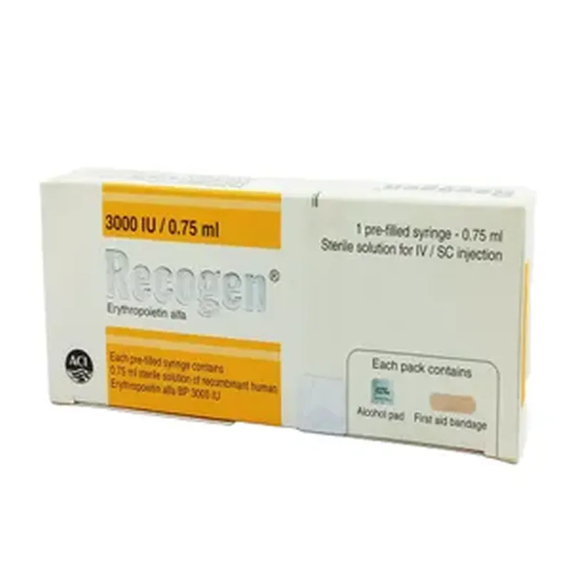 Introduction: Recogen prefilled syringe 3000 IU is a medicine that helps your bone marrow to produce more red blood cells. It is used to treat a type of anemia caused by kidney disease. It is also used to treat anemia caused by cancer chemotherapy and by taking medicines to treat HIV. Recogen prefilled syringe 3000 IU is given by injection either under the skin or into a vein which will be decided by your doctor. Usually the injections are given by a nurse or doctor. The dose depends on your body weight and the cause of your anemia. Iron supplements both...